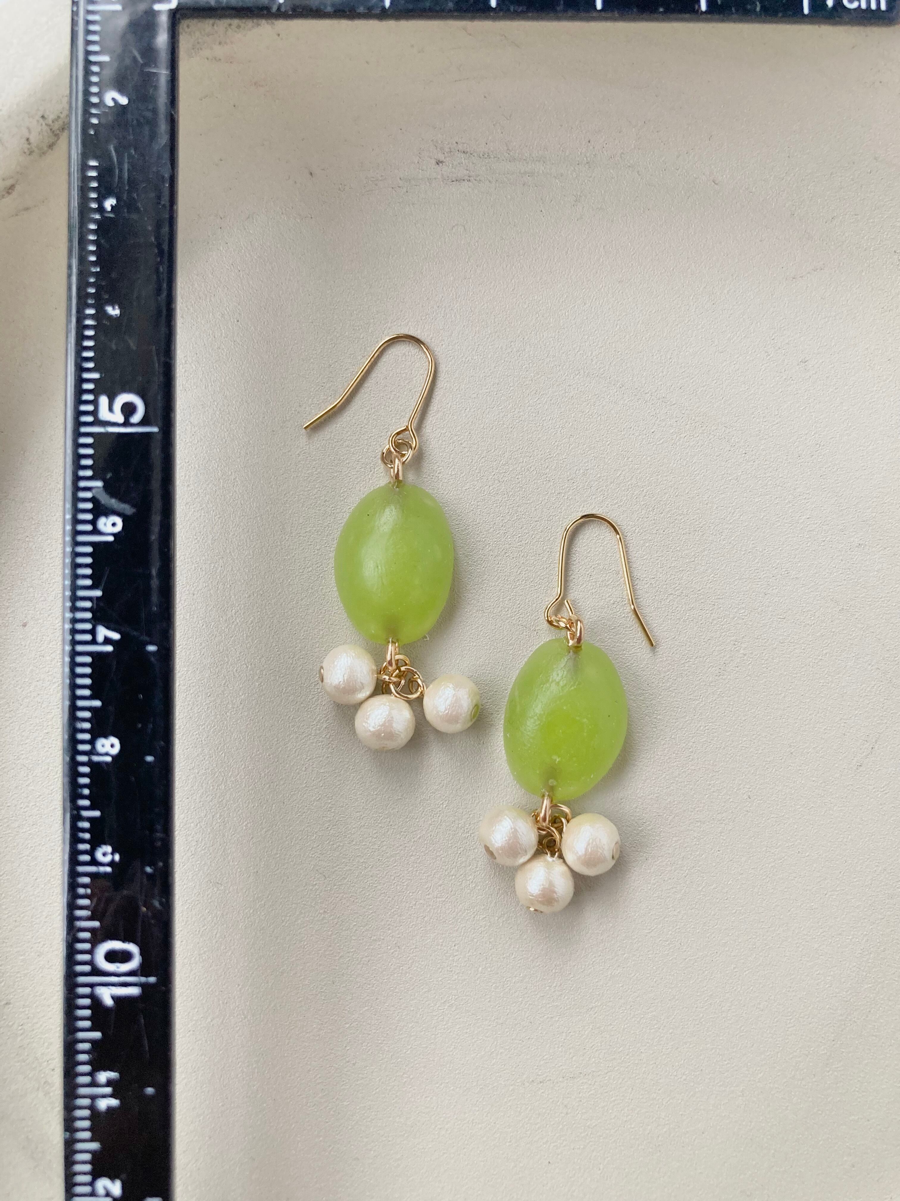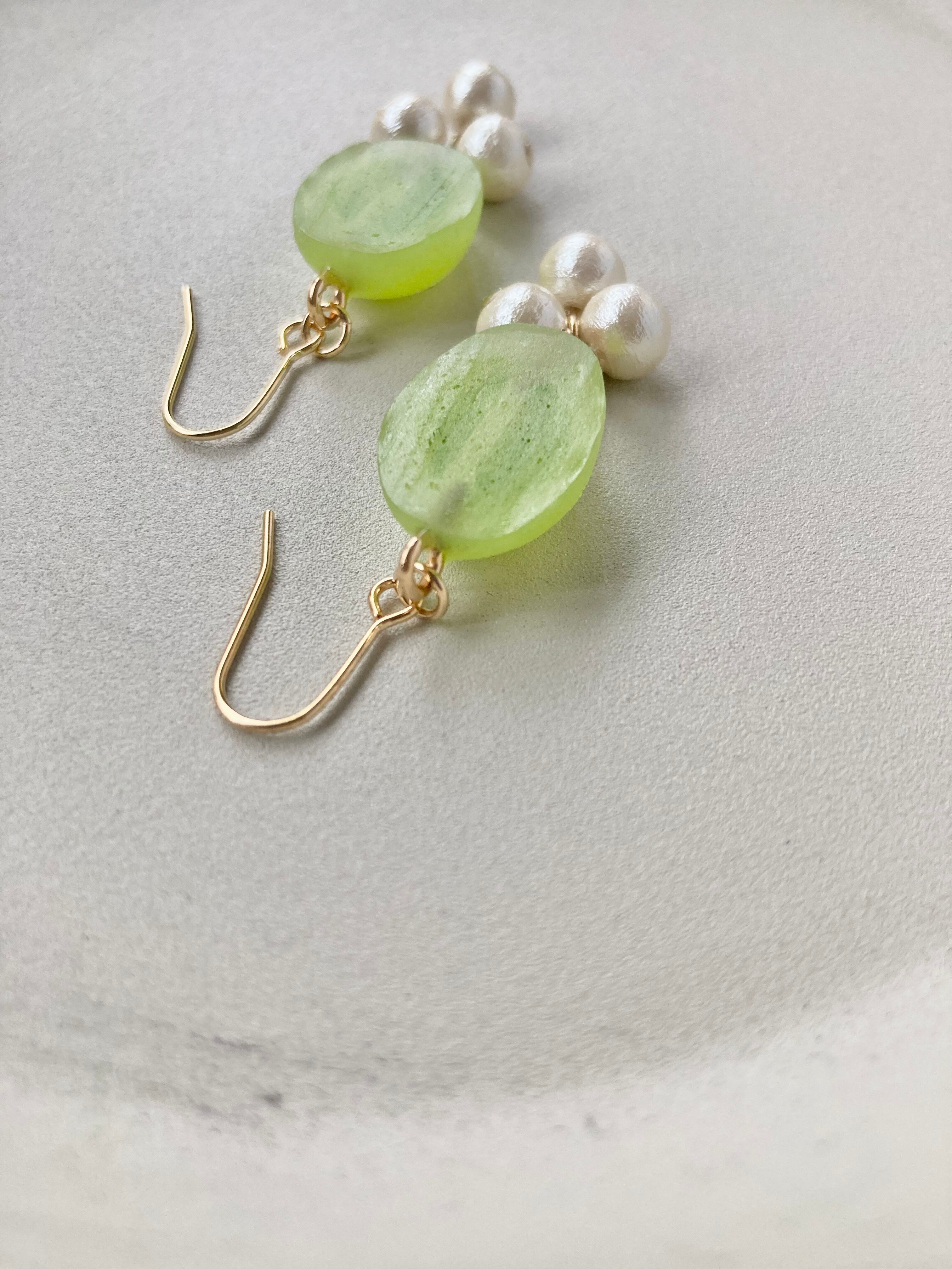 透明感のあるマスカットとコットンパールを組み合わせたピアスです
