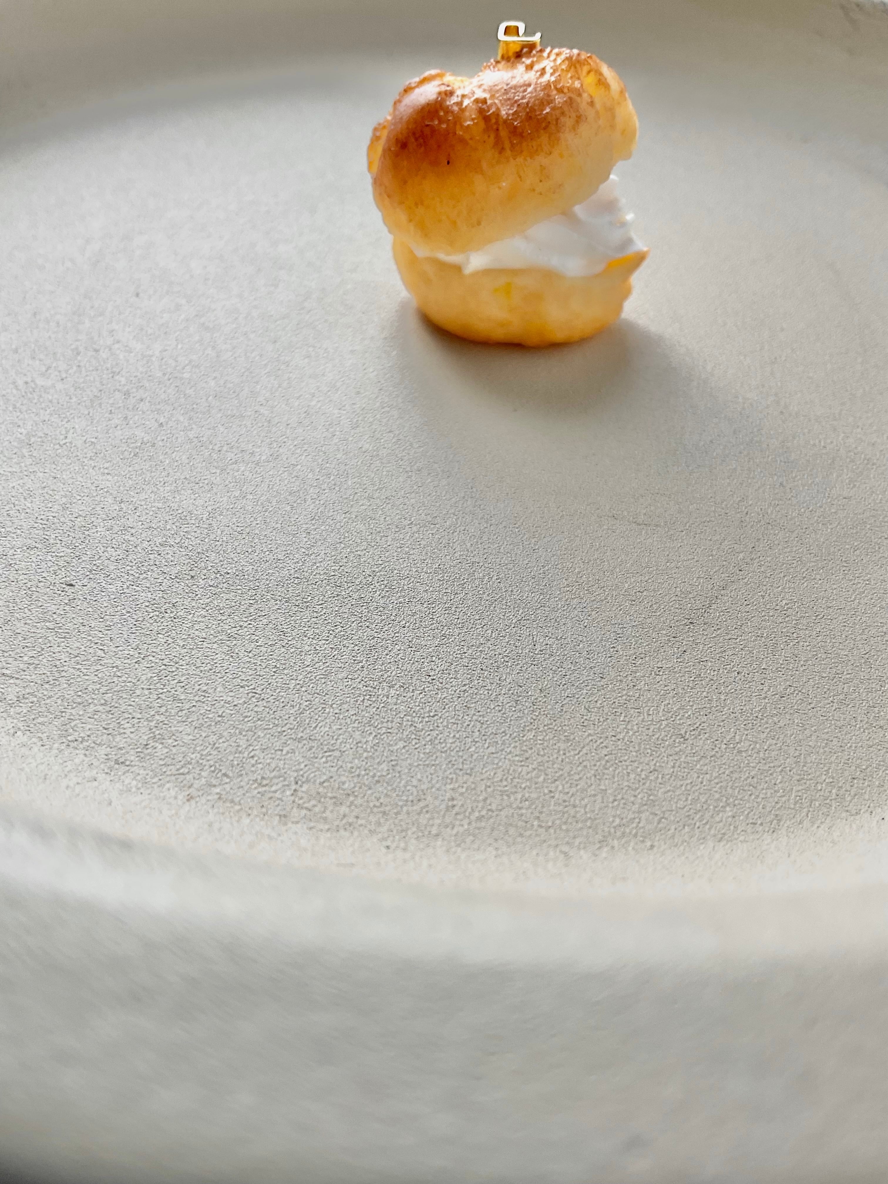 クリームをたっぷり入れたシュークリームのブローチです