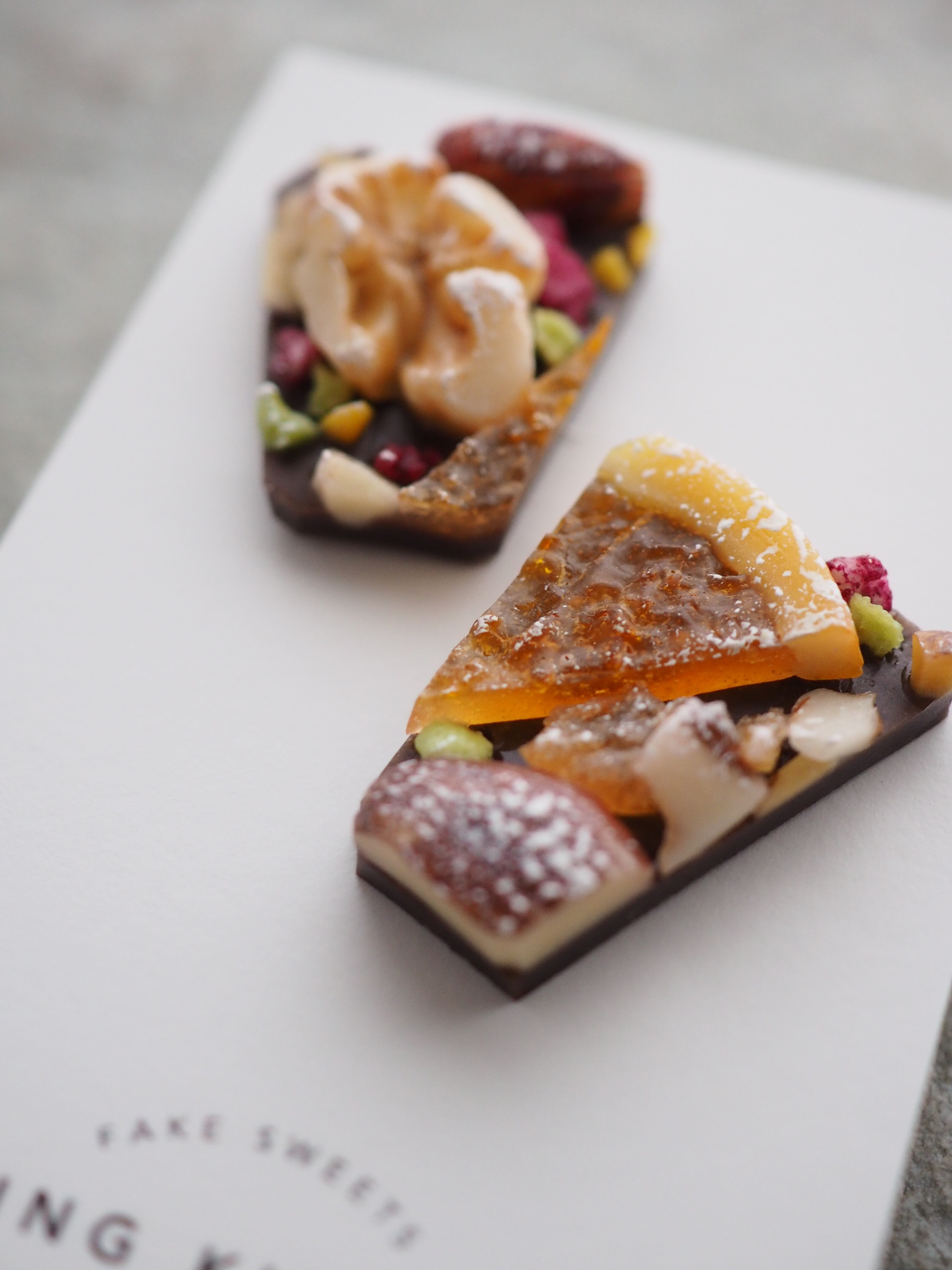 ドライフルーツ(オレンジ)とナッツチョコレートを組み合わせたデザインの