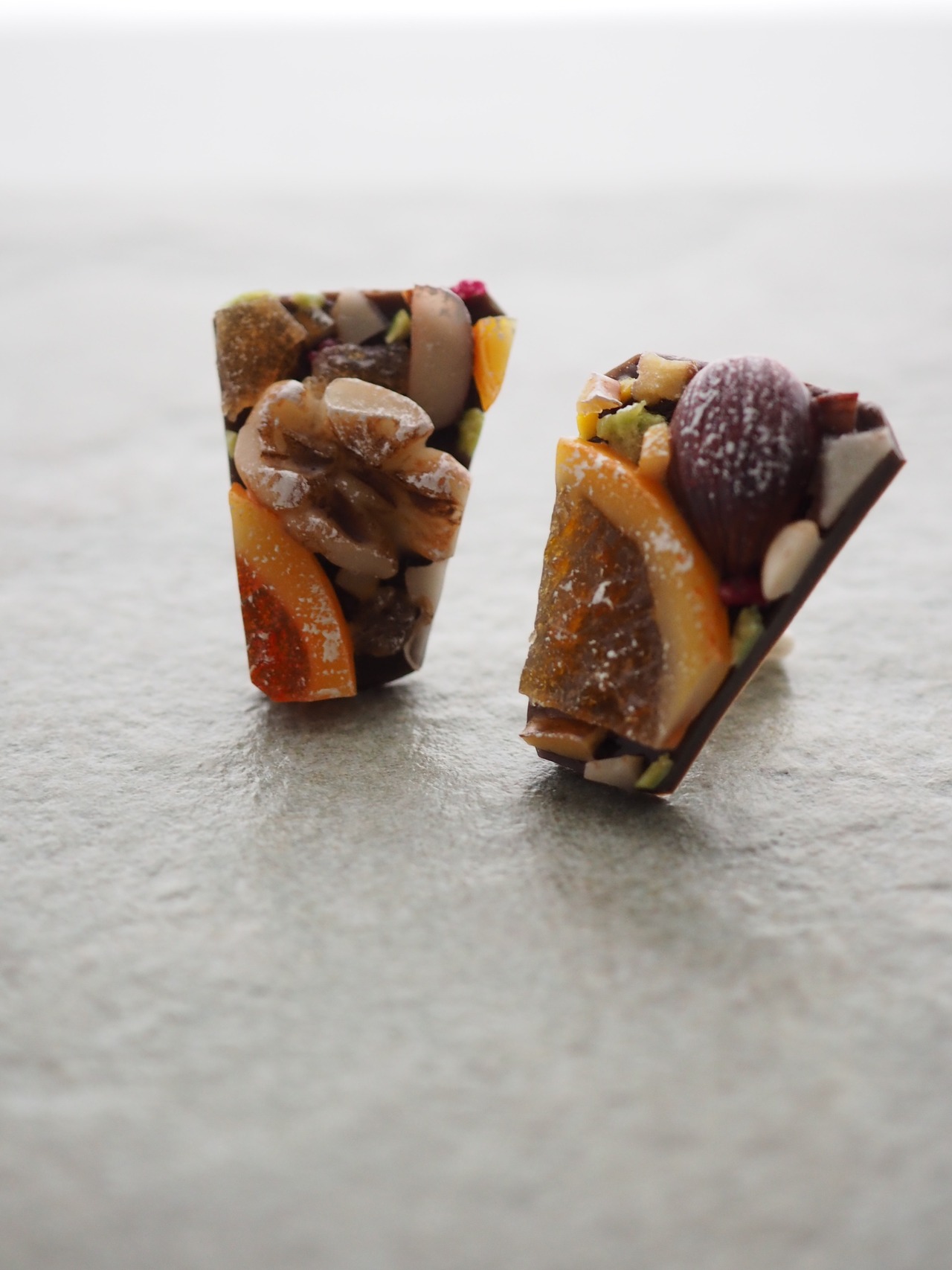 ドライフルーツ(オレンジ)とナッツチョコレートを組み合わせたデザインの