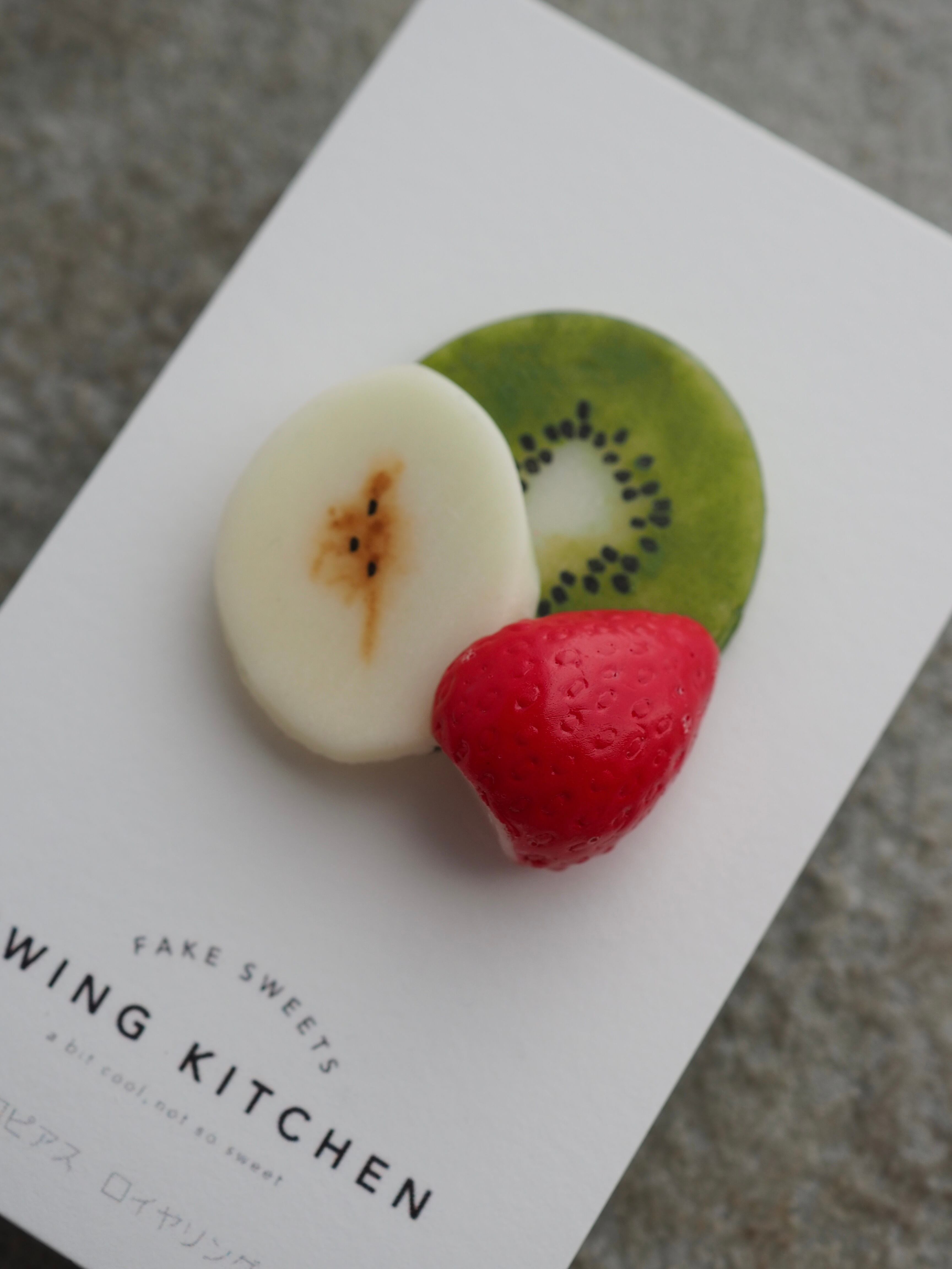 こちらの商品は樹脂粘土等を使い、スイーツ、フルーツ部分は手作業でお作りしています。