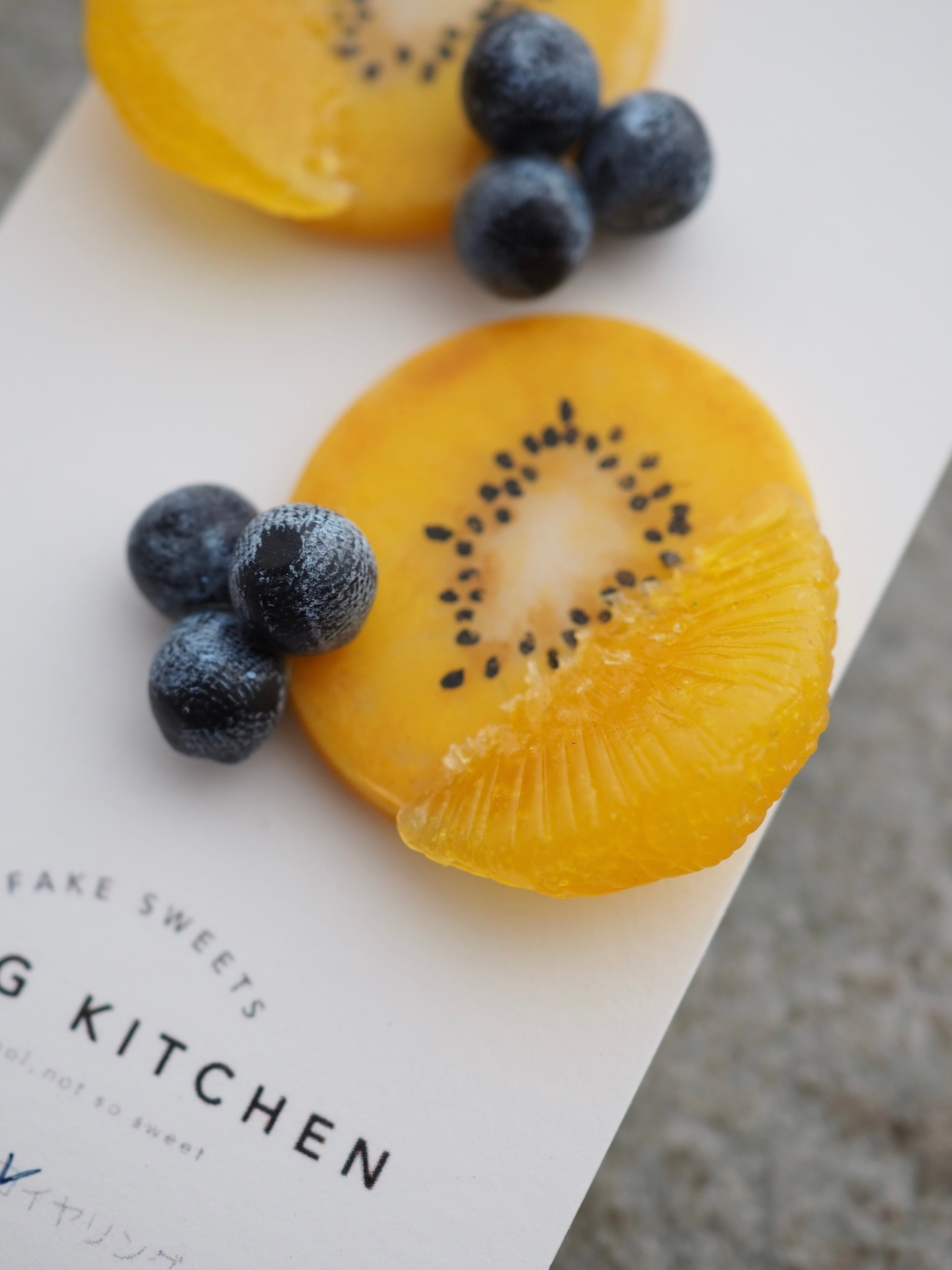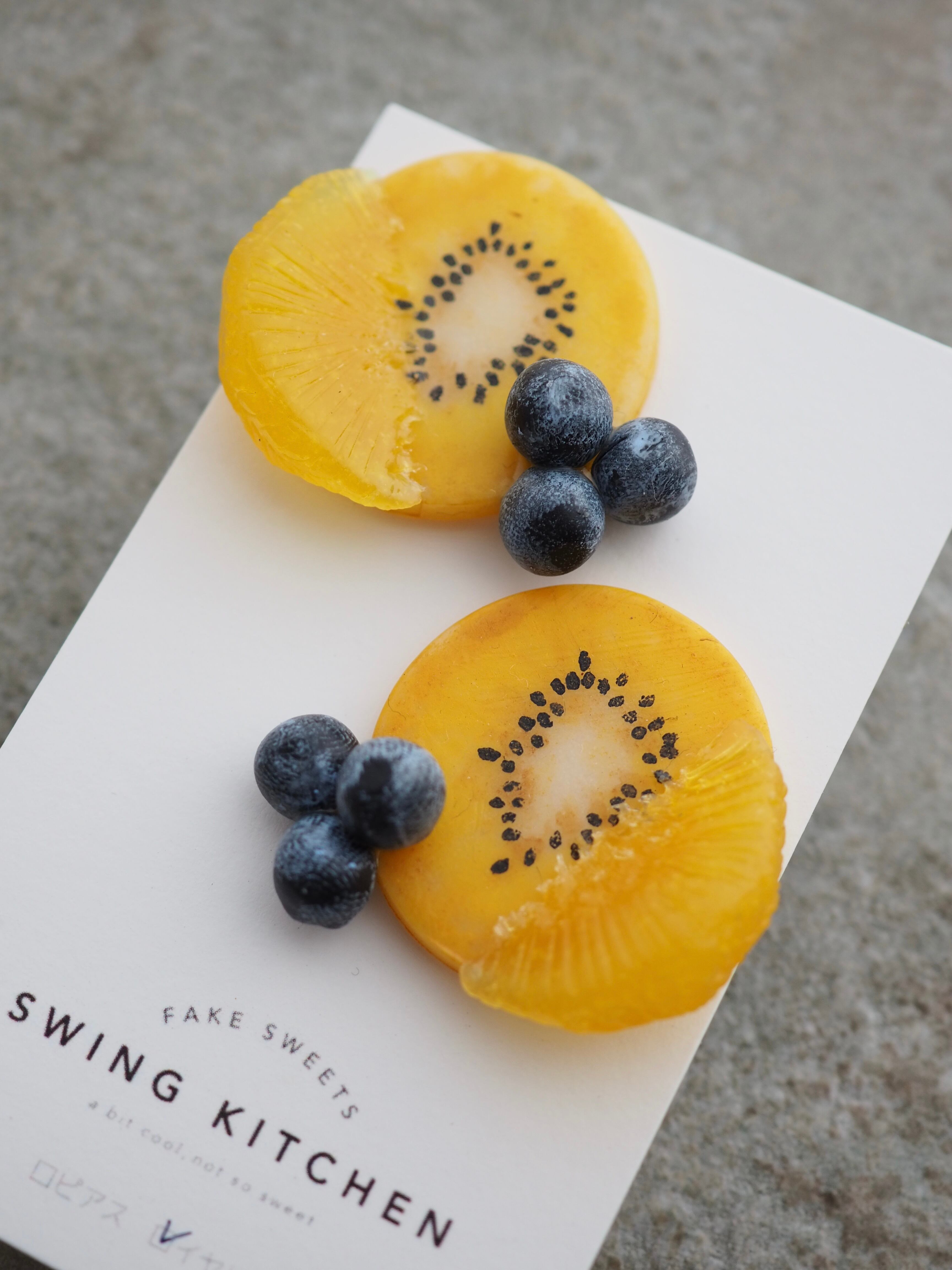 ゴールドキウイ、オレンジ、ブルーベリーを組み合わせたデザインの