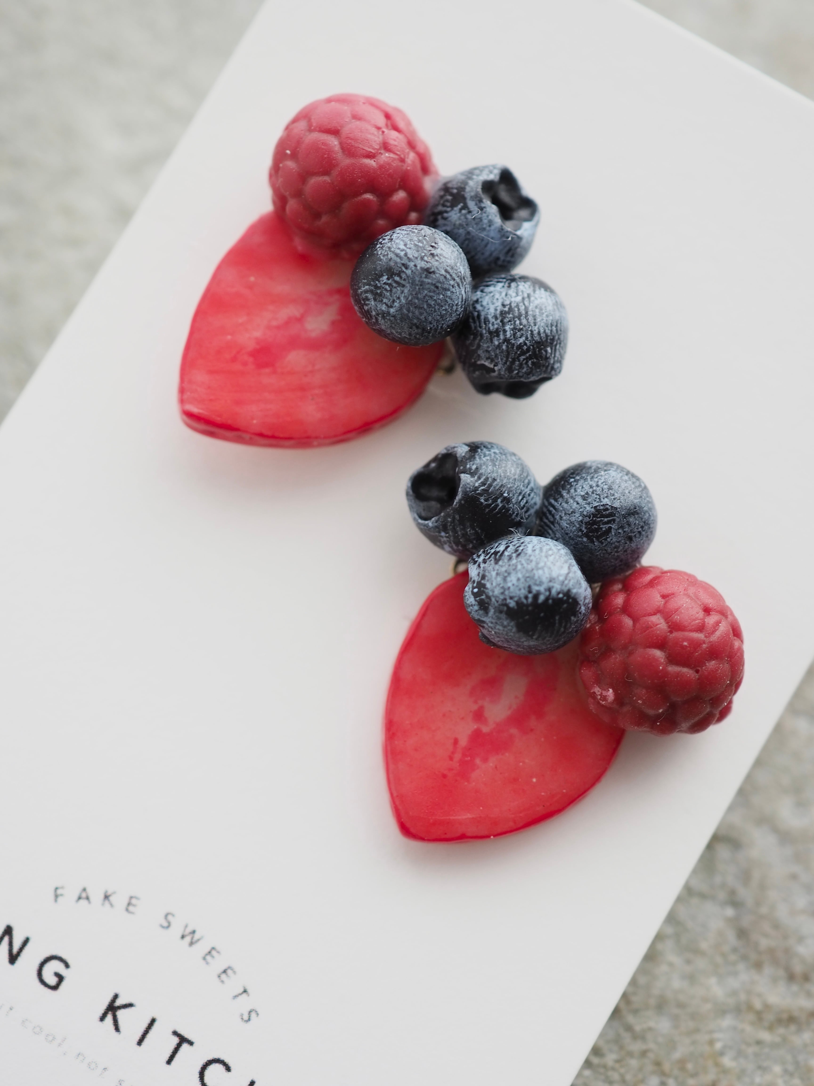 こちらの商品は樹脂粘土等を使い、スイーツ、フルーツ部分は手作業でお作りしています。
