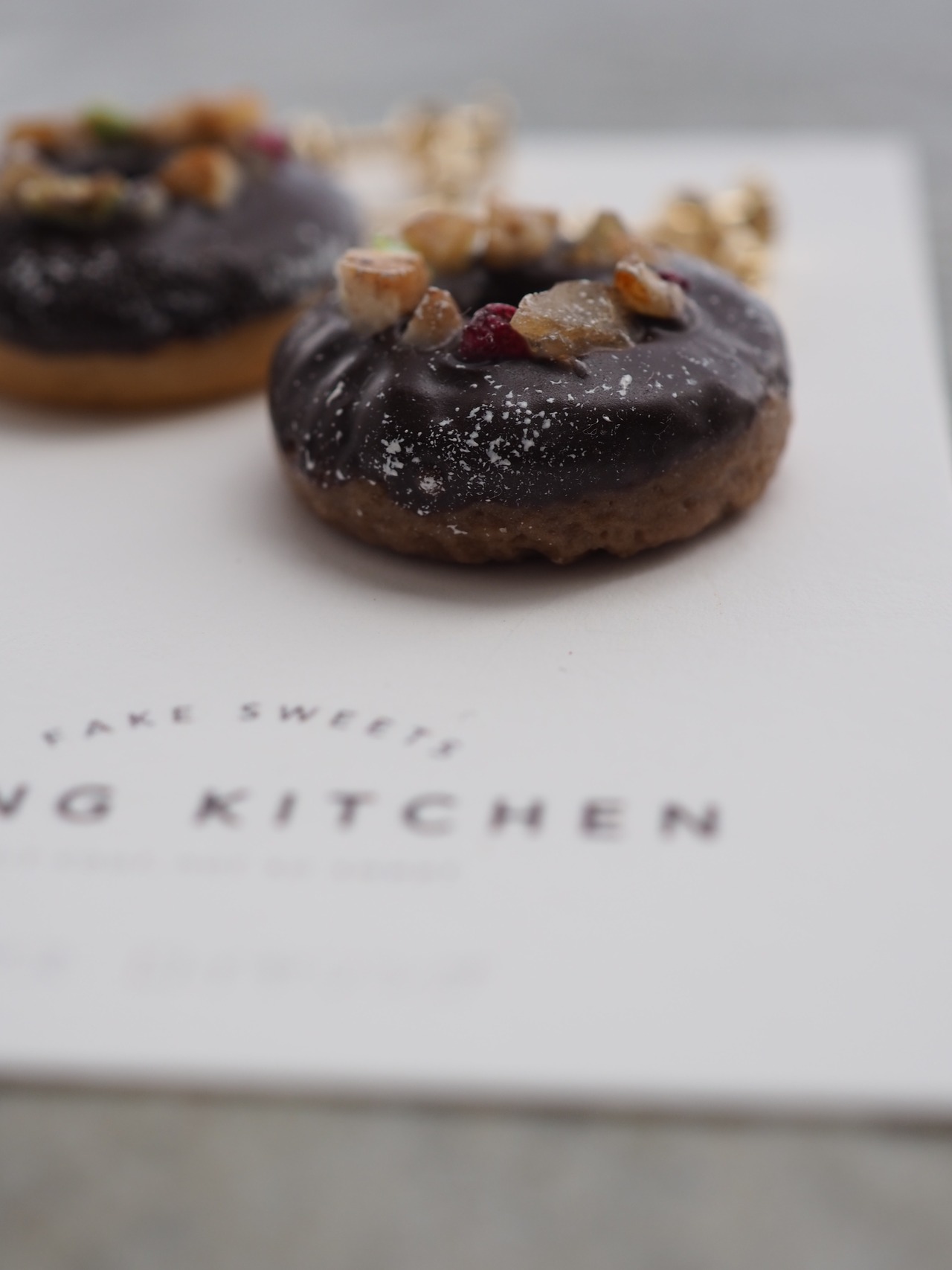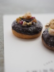 ナッツをたっぷり乗せたチョコがけドーナツで
